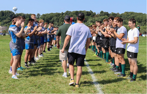 Before the game, the teams came together to honor military members and first responders in remembrance of the events of Sept. 11, 2001. Among those honored was the late Mark Campbell, former Slippery Rock professor and 20-year rugby advisor, and Tommy McClain, a student and rugby player at SRU who suffered a stroke at a tournament in June.