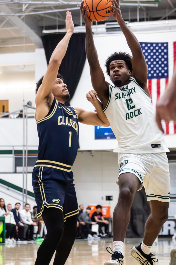 The Slippery Rock men’s basketball team surpassed Clarion University during a close call in the second half. A three-pointer delivered by Brady Mayo lifted SRU to an 80-78 victory on Wednesday at Morrow Field House.