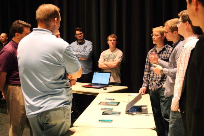 Winning first place in the web category was Ronald O’Dell, Eric McAlpine and Jacob Dunn with their personal financial tracking application, “Wallet.” Wallet allows users to input their spending habits and produces a line chart so one can visualize their spending trends over time, team member senior computer science major and information technology minor, Ronald O’Dell, said.